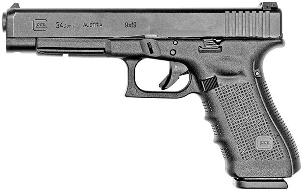 Glock 34发射9mm Para弹,长度介于Glock 17和Glock 17L之间,是Glock系列中首次推出的“短”比赛型——这个短是相对于枪管长153mm的比赛型而言。