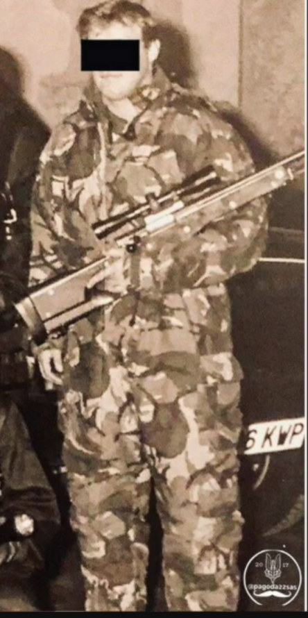 一个美军士兵在与英军的联合演练时手持英军的L96狙击枪摆拍