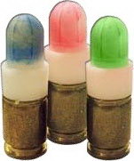 FX标记弹是利用弹壳内的高压气体,把含有水溶性染料的易碎弹头发射出去。虽然FX标记弹的射程也不如激光模拟训练系统那么远,但其初速比普通彩弹枪要高得多(5.56mm FX标记弹初速为198m/s,普通彩弹枪初速通常低于90m/s),射程比较远,草丛不容易阻碍彩弹的飞行。而且FX标记弹是把真枪更换枪管、枪机和弹匣来发射的,操作感没有不同。目前美军不少特种部队和常规部队都有采用FX标记弹作为城市战或CQB训练。