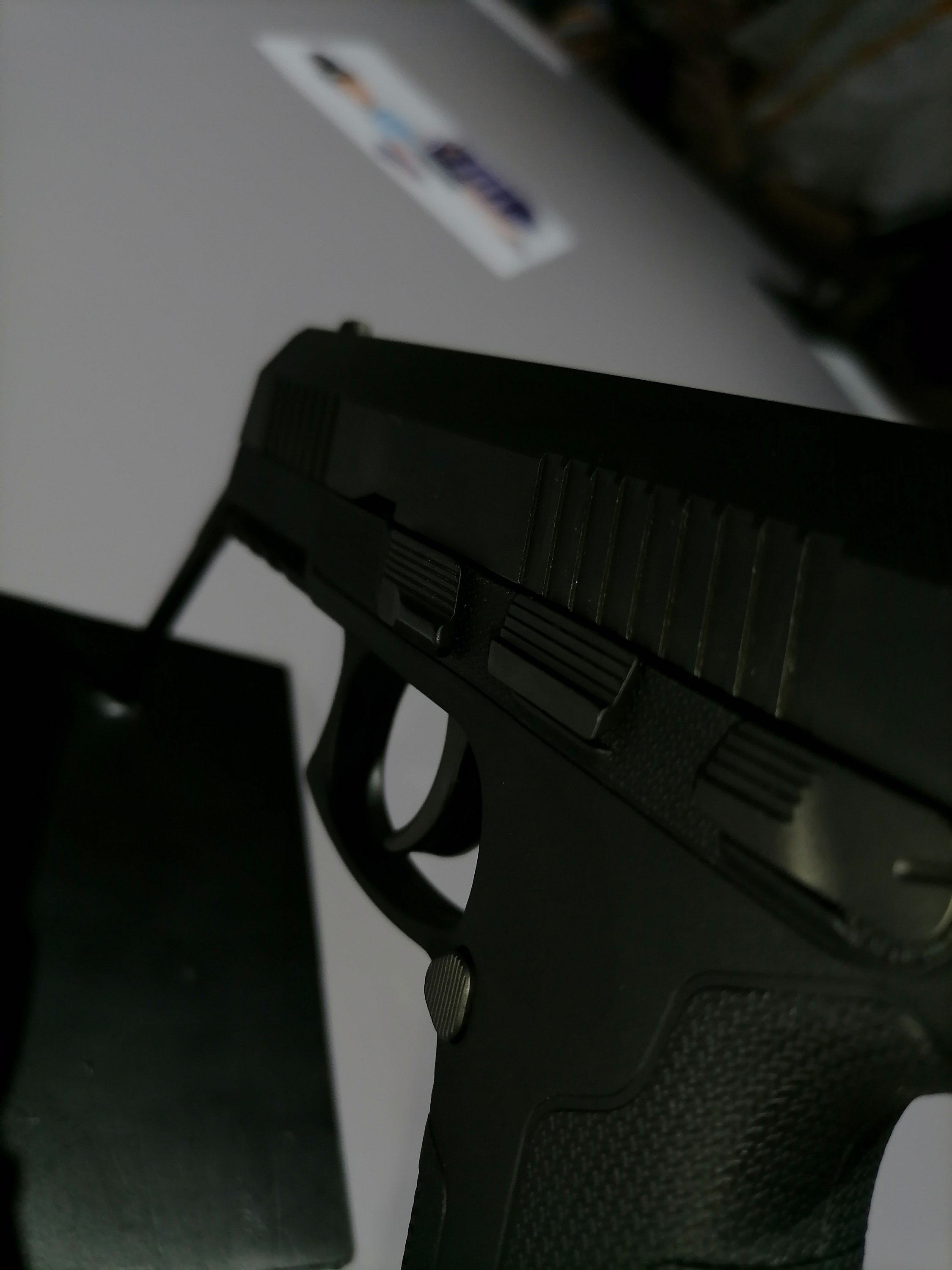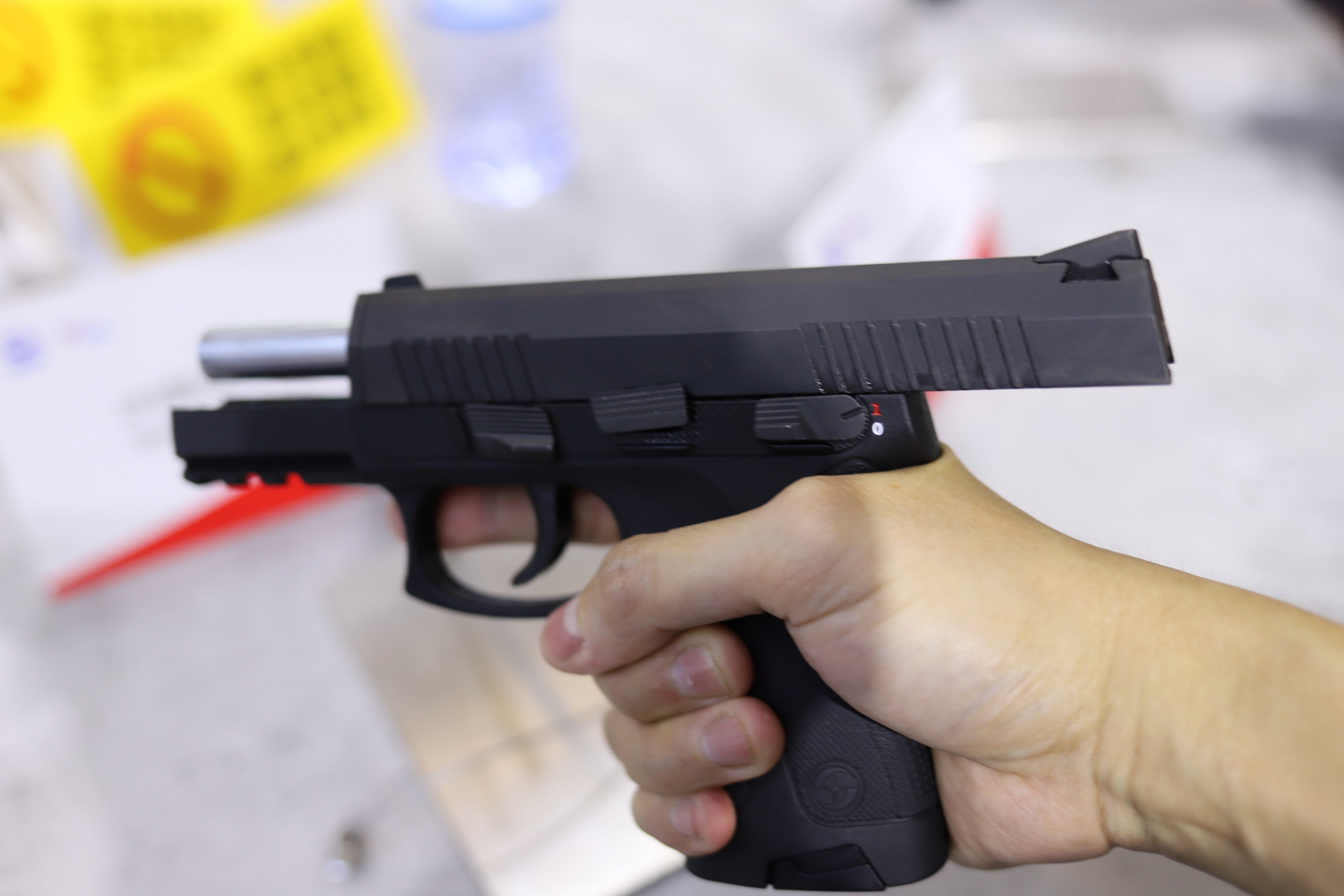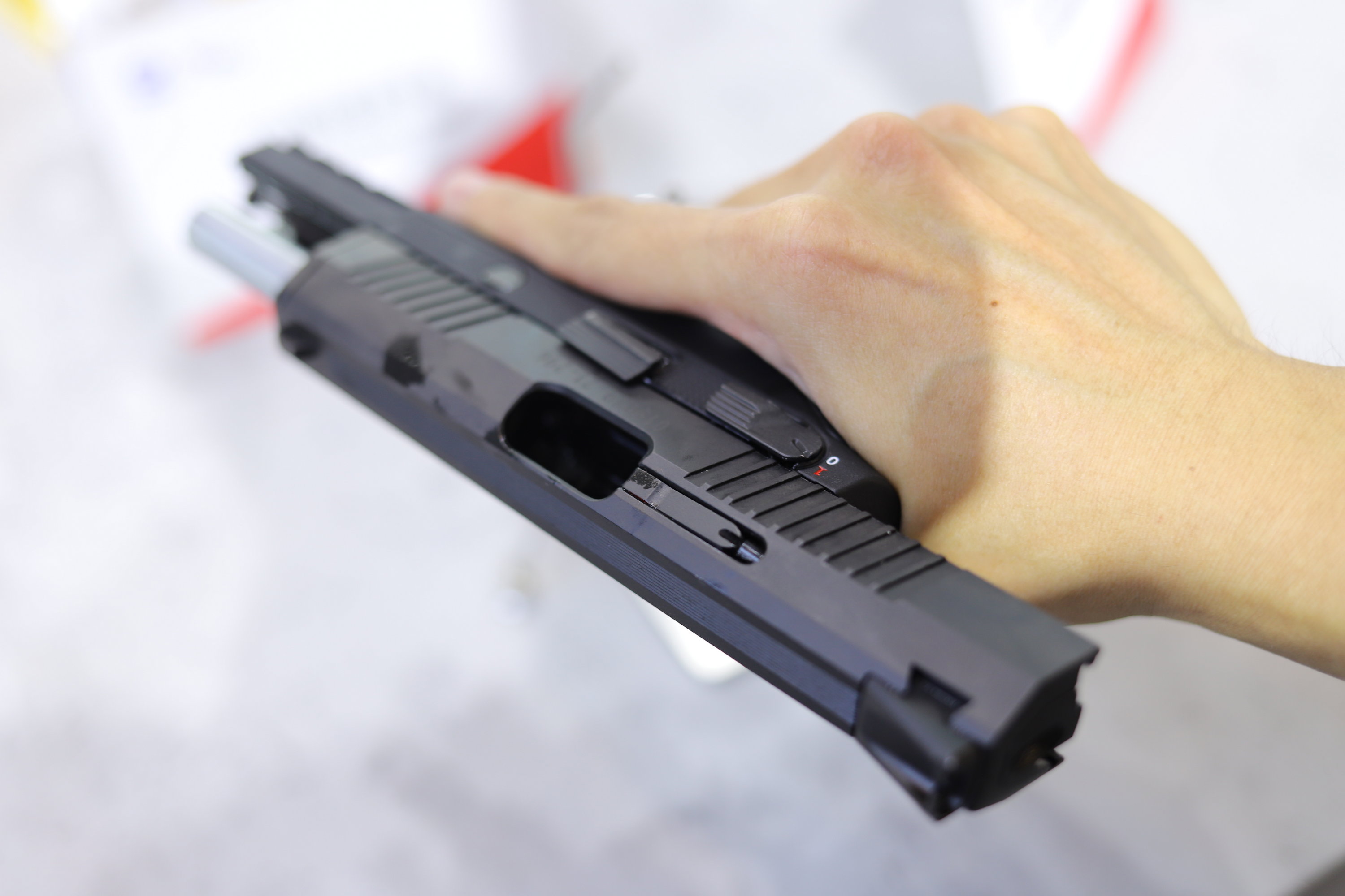 QSZ193式自动手枪是一款击针平移击发的袖珍自动手枪,整体呈哑光黑色,套筒为钢制,套筒座为工程塑料制作,扳机护圈前部设计有皮卡汀尼导轨,可以安装各种附件。其套筒前后均设计有防滑纹,可满足不同习惯的射手使用,套筒尾部设置有膛内有弹指示器,白天可以看见,夜间可以通过触摸来判断(有弹状态会有凸起);该枪的套筒座上设计有手动保险和空仓挂机,均为双面设计,提高了人机功效。