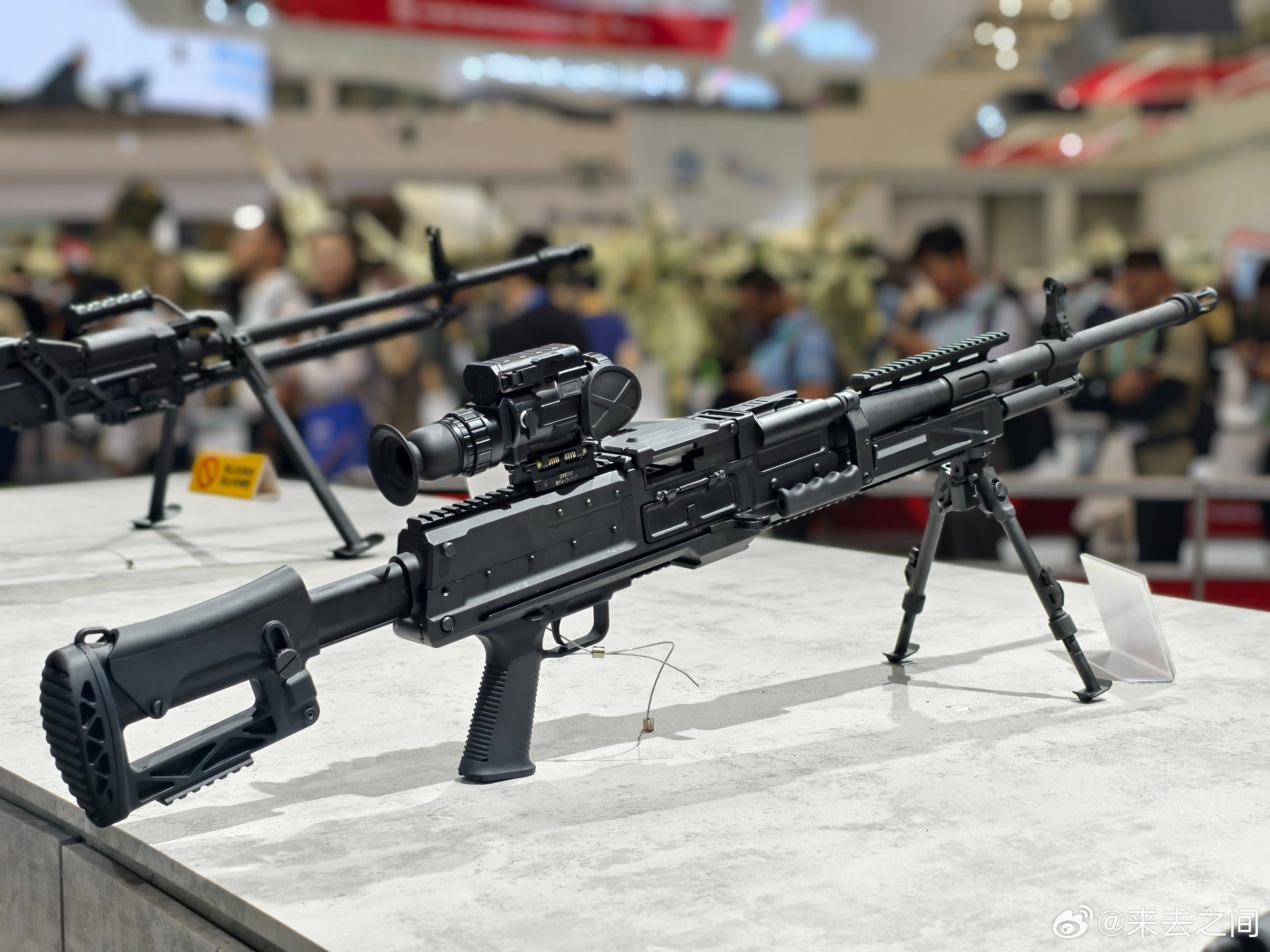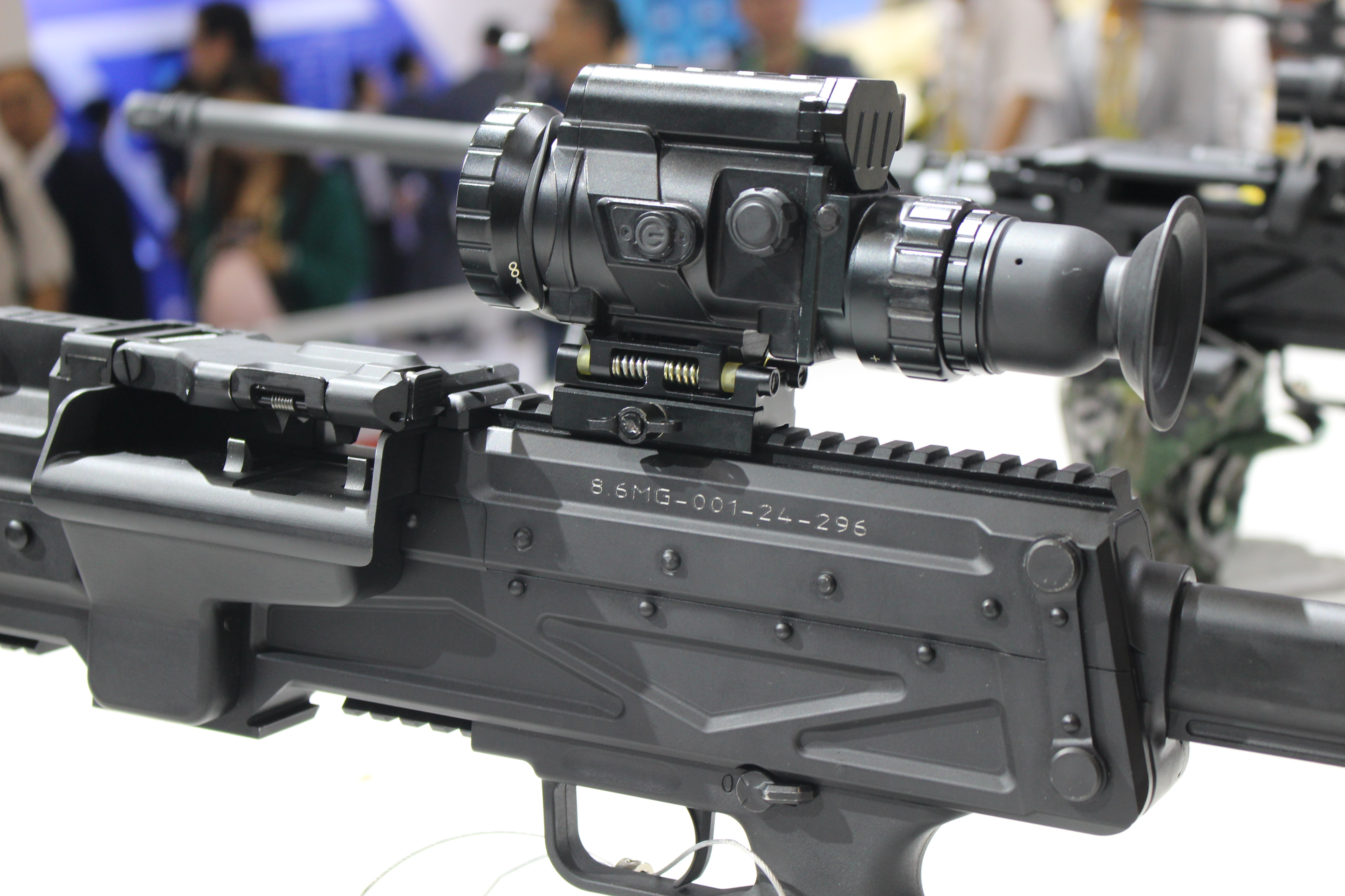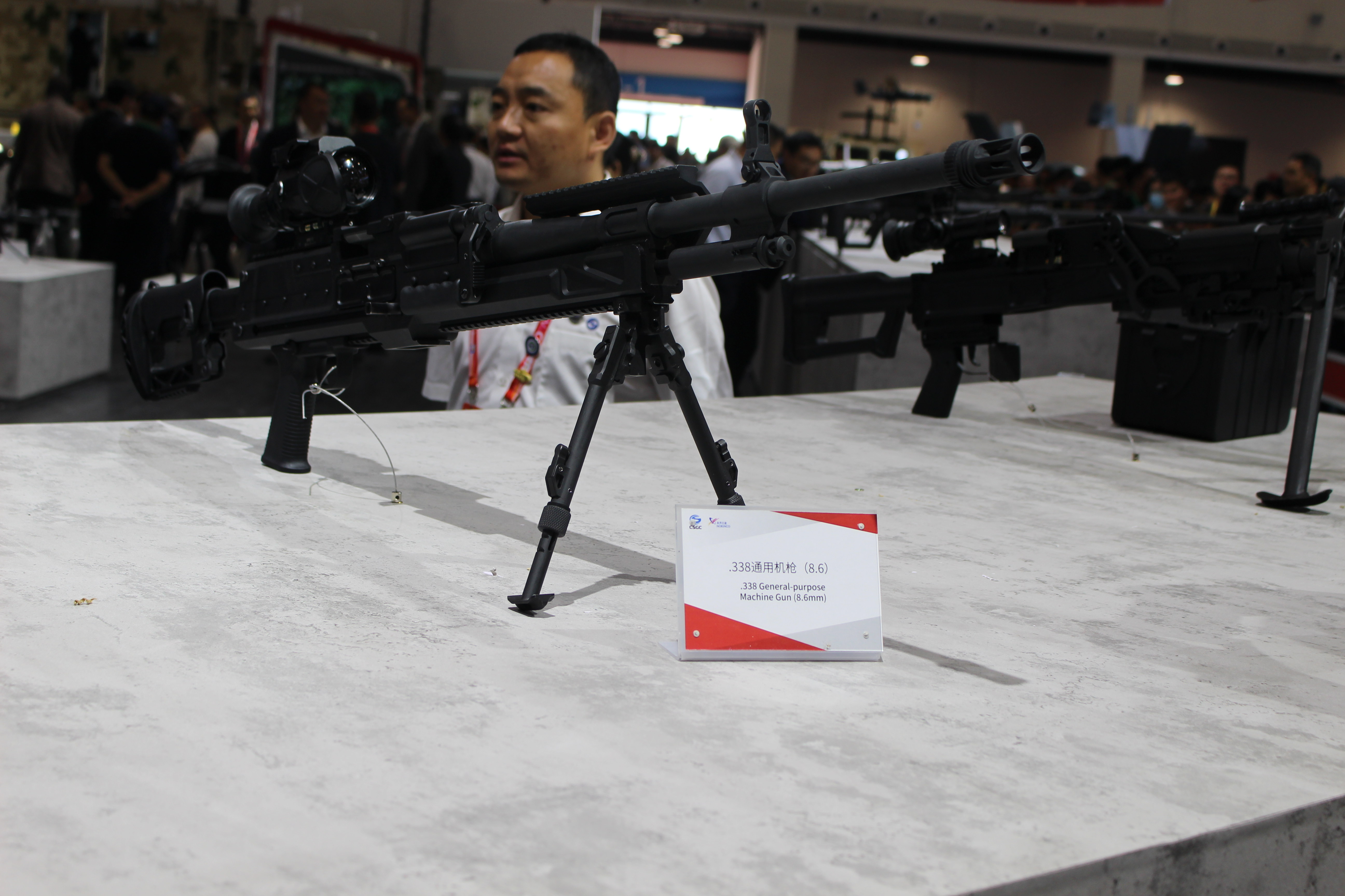 8.6mm口径(即.338)通用机枪的传闻其实一直有,不过在2024年珠海航展上首次展出后,得以证实它的存在。目前该枪的相关信息不多,机匣上也没有暂时型号名称,但从展出样品来看,结构原理与QJY201通用机枪相近,所以应该也是与QJY89式重机枪相近的管退与导气混合的自动方式。无独有偶,美国的SIG MG338和RM338也同样采用了类似的混合动力。