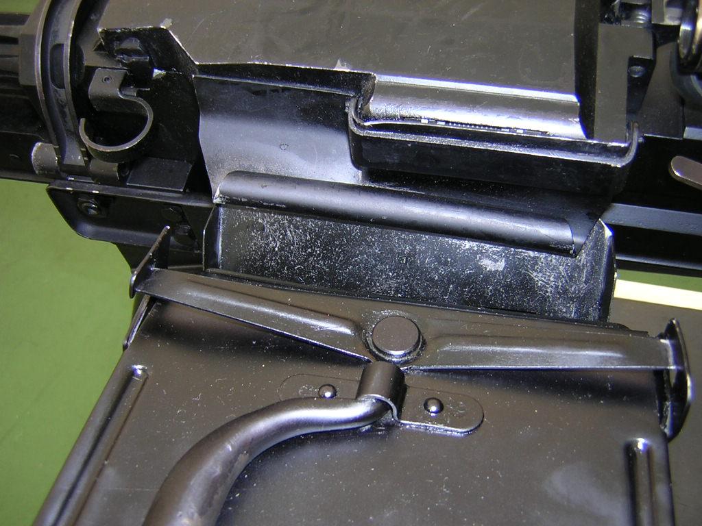 89式重机枪的枪管与机匣连接采用抽拉式固定栓,可快速进行装拆,而且只有固定栓装到位并合上供弹机后才能射击,确保使用安全。