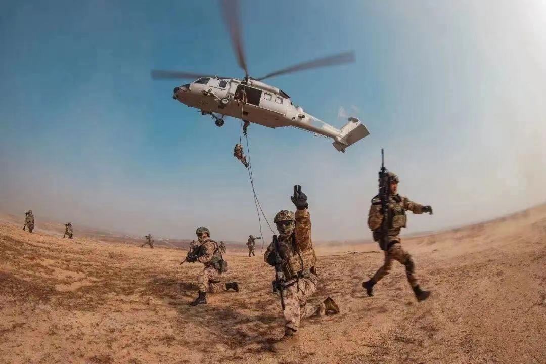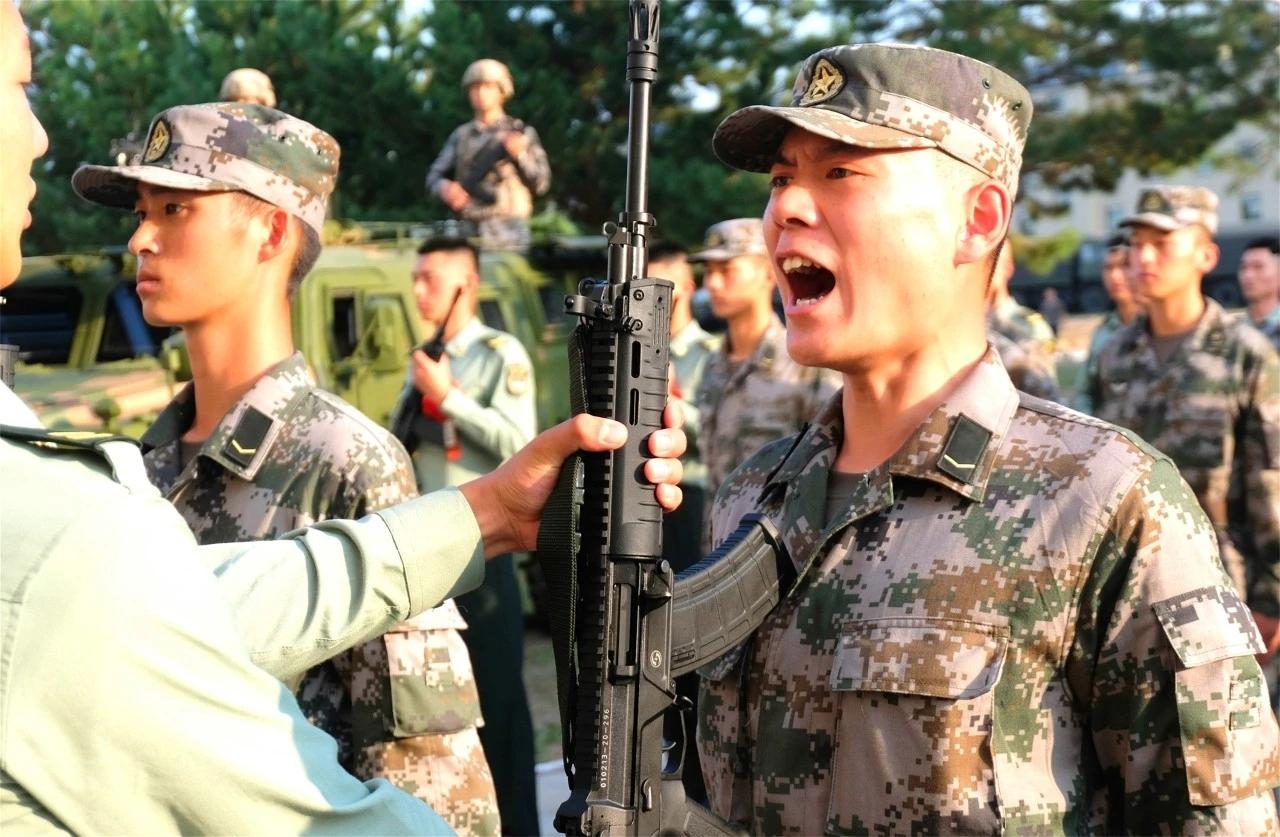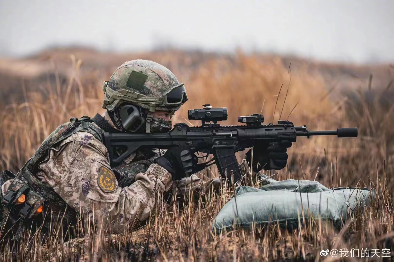 2021年海军陆战队的一张照片,图中从左到右分别为:QBZ192、QCQ171、QBZ192、QJB201和QBU191