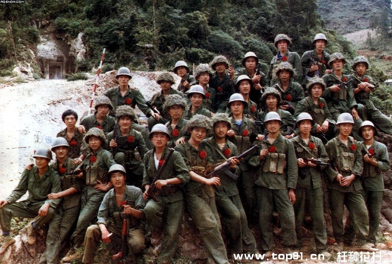 对越自卫还击战中的中国侦察兵,左一手持64式微冲