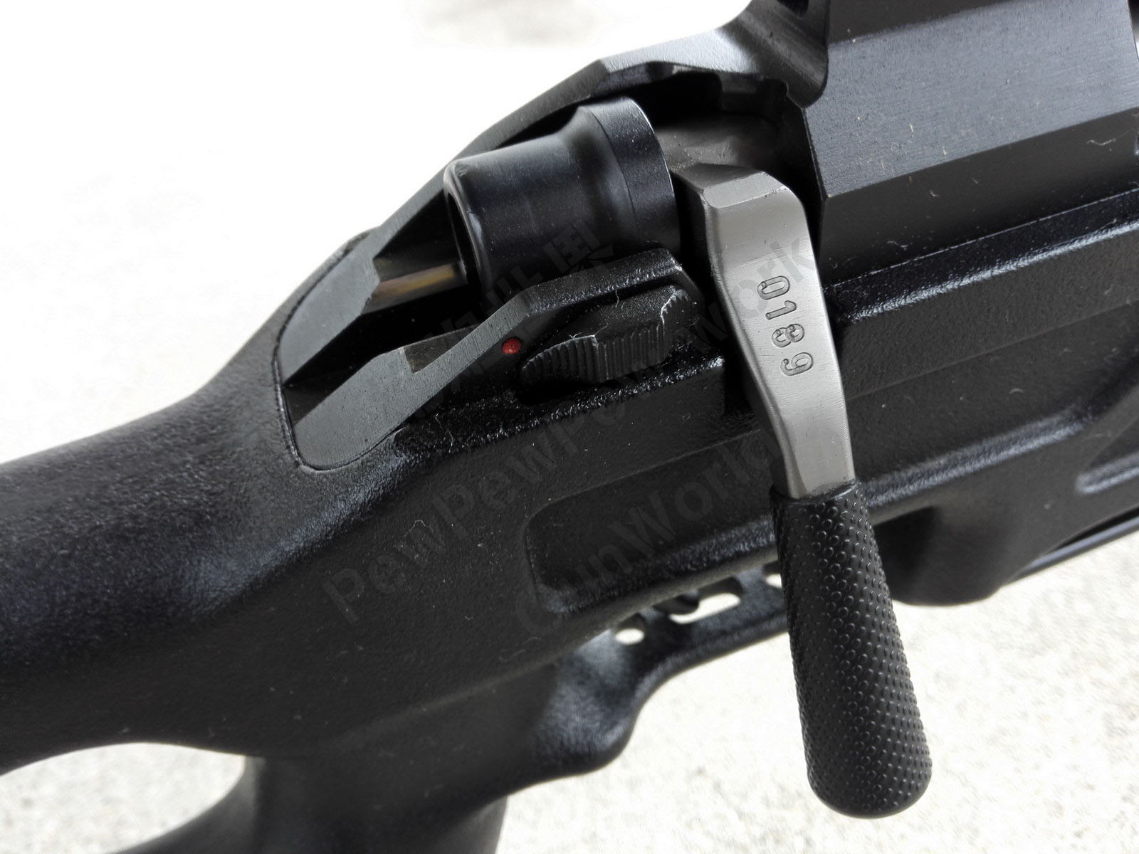 ![]() 早期的手动保险位于拉机柄后方 |