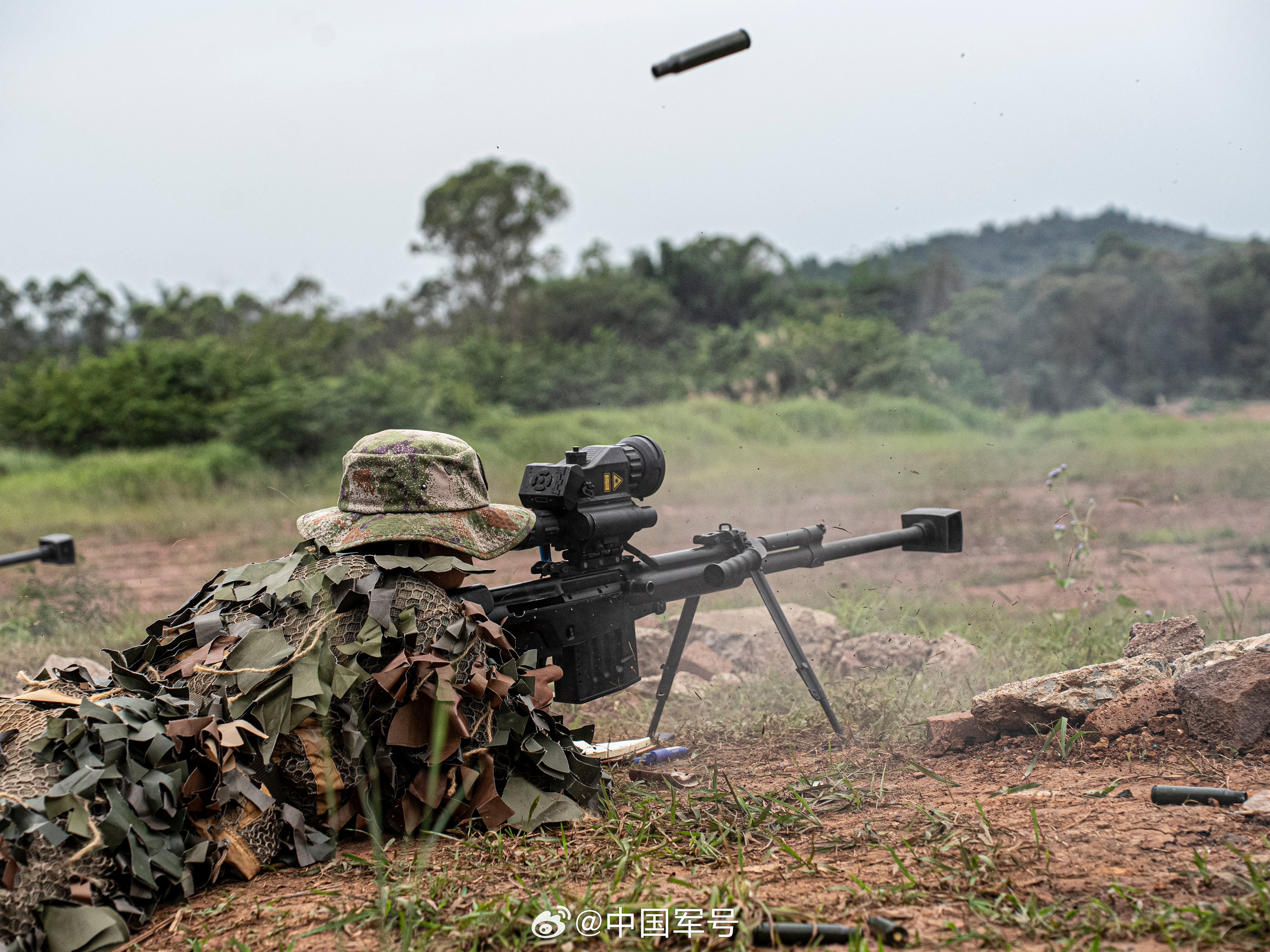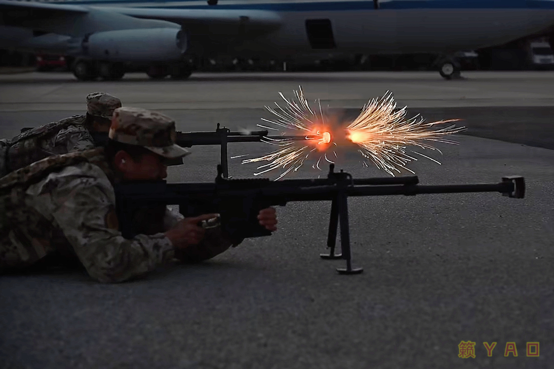 摆拍的姿势,如果真这样射击,当枪架的人可能会被的制退器喷出的火焰灼伤吧
