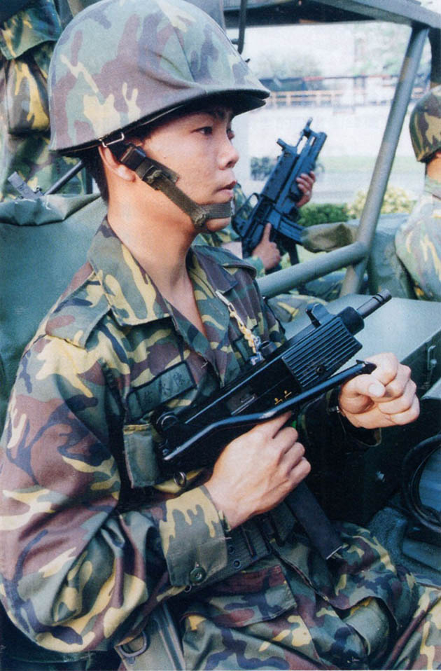 ![]() 装备迷你乌兹的台湾海军陆战队特勤队,但他们同时也装备了T77 |