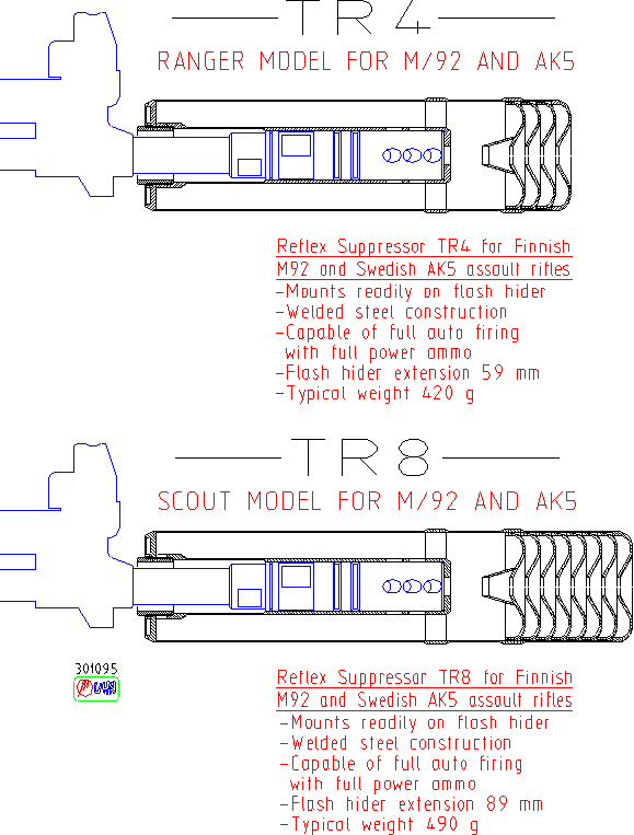 Rk.95是正式通过了芬兰陆军的试验及定型后的萨科M92的生产型(现在统一称为M95),该枪有5.56×45mm和7.62×39mm两种口径。其中的7.62mm型在1995年芬兰陆军采用,并定型为Rk.95TP(Rynnäkkökivääri 95 Taittoperä)。不过芬兰陆军只接收了一个批次,数量不多(只在1995年至1998年间生产),所以现在芬兰陆军中仍然装备着大量的Rk.62。半自动型的萨科M95S则用于出口民用市场。