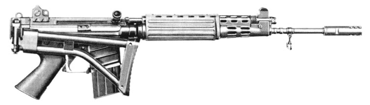 鉴于口径减小是现代步枪发展的一种趋势,当美军开始装备M16A1步枪的同时,FN公司也在1963年开始研制一种5.56×45mm口径步枪。样枪在1966年公开,1967年正式生产定型,被称为FN CAL(轻型自动卡宾枪的法语Carabine Automatique Legere的缩写,而英语则称为Light Automatic Carbine)。CAL的外表精致,但质量就比较差,法国在1971年至1974看间对CAL进行了试验,性能表现不理想,而且CAL生产成本高,分解结合及维护保养十分不便,在模拟战斗中还发现CAL的平均寿命太短。因此,CAL计划被放弃,只有极少量的半自动样枪被卖到美国。随后,FN公司的设计师花了两年时间对CAL修修补补地改出了另一个产品,命名为FNC,刚好赶得及参加1976年的“北约下一代步枪选型试验”。