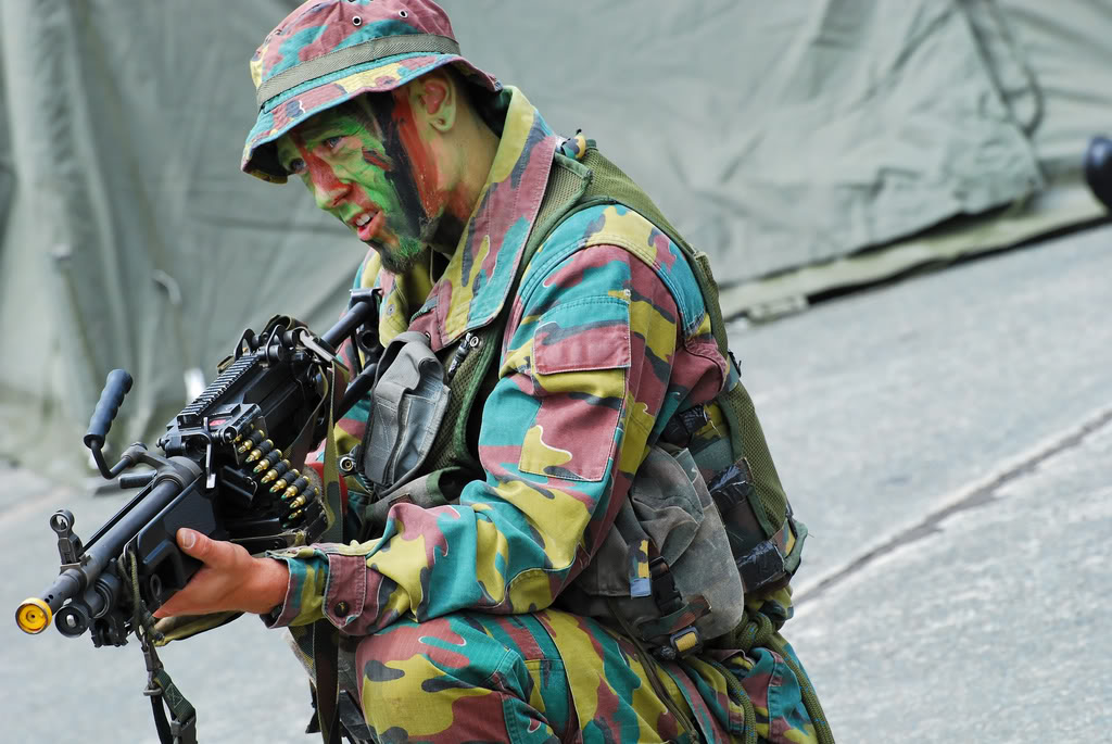 在刚果(金)维和的法军士兵,他的MINIMI伞兵型涂上了迷彩色