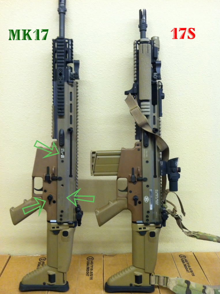另一位玩家比较的Mk17和SCAR-17S的细节,在击发部件上的区别有可能是让军用型和军用型之间不能互换