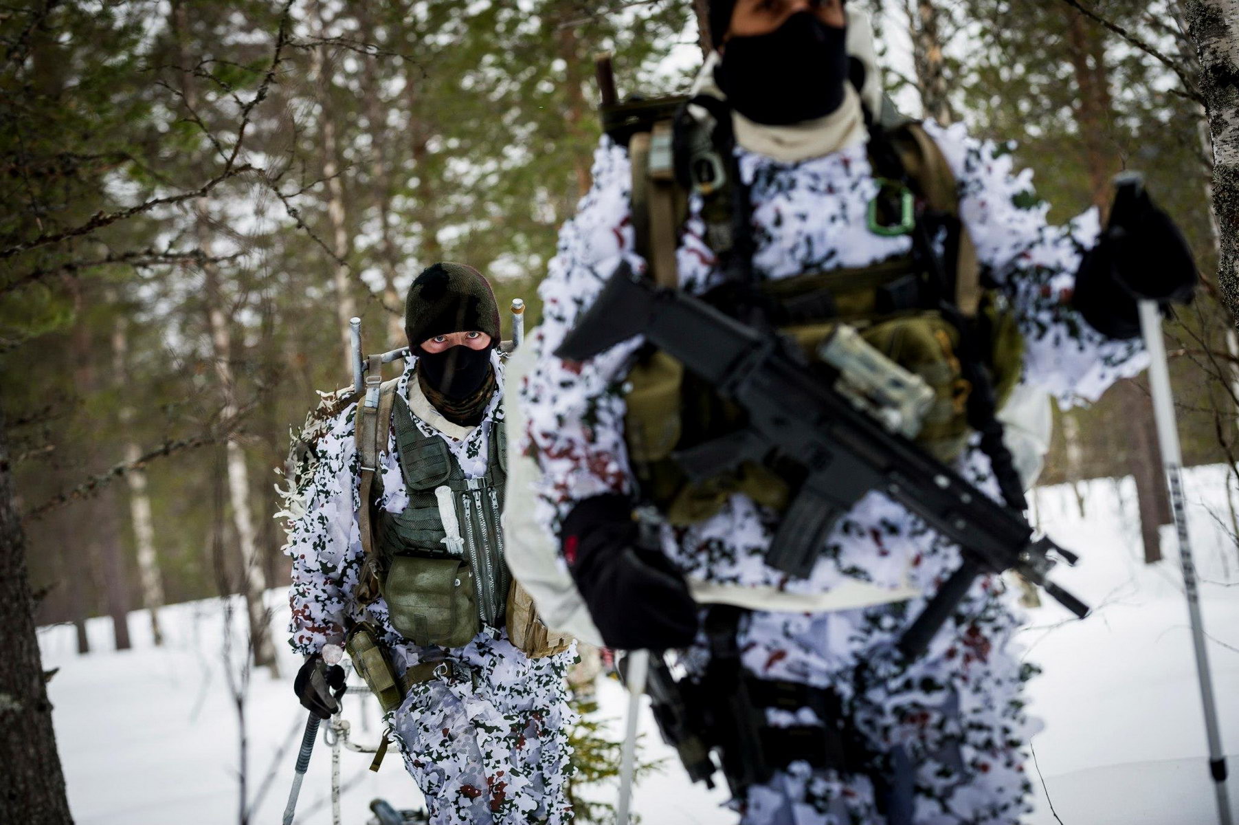 ![]() 法国第13伞兵龙骑兵团在雪地里练习 |