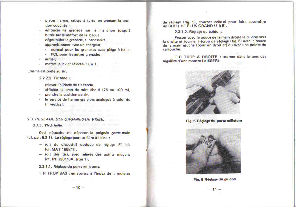 间接发射枪榴弹时,如手册图示,枪托必须抵在坚硬的物体或楔入土中的桩上,步枪左右侧面分别向着射手和目标方向,采用类似迫击炮或掷弹筒的姿势抛射枪榴弹。其他5.56mm口径的步枪支撑在地上发射榴弹时,枪托可能会打断。FAMAS F1不会出现这个问题,是因为枪托和机匣之间装有特殊的减震器。