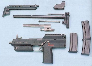 目前HK公司考虑能否可以取消作为单独部件的机匣盖,使机匣相应地“扩大”,能否将枪机卡笋与封闭装置连在一块。 在PDW上,在弹匣卡笋位于扳机后方,设计上与USP手枪类似。