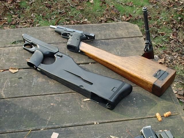 VP70的枪托也是硬式枪套,这种一物二用的方式即所谓的“盒子炮”正如全自动毛瑟手枪和俄罗斯的斯捷奇金手枪。枪套上有专用挂具,可挂于腰带上或挟在腋下。但这种又大又硬又重的枪套并不好用的。枪托的另一个主要作用就是提供点射功能,也应是说,如果不装上枪托,VP70只能单发射击。快慢机装在枪托的左前端,安装枪套时,须将快慢机柄装定于“1”。向后压枪套底部的连接卡笋,将枪套插入手枪后端的连接槽中,向上推直至与卡笋扣合为止。