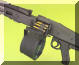 往枪上装弹链时,弹链开口朝下。通常的装弹方法如下;打开受弹器盖,装上弹链,使第一发弹位于内,外拨弹齿右侧,并被外拨弹齿卡住,然后关闭受弹器盖。再将机柄后拉,枪机滚轮随枪机向后运动时,迫使大拨弹杆前端向右移,通过小拨弹杆和双臂杠杆的传动,带动内拨弹滑板向右拨弹至进弹口,并被规正;而外拨弹滑板则向左空回,准备拨取决一发弹。