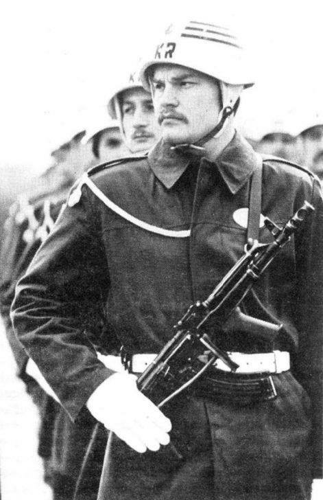 这个阿富汗警察把他的AMD-65的前握把换成AK-63的木制握把