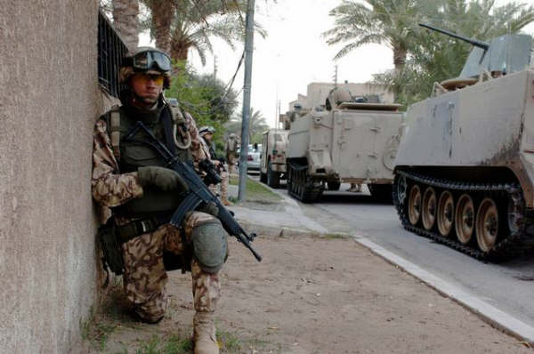 使用MAR的爱沙尼亚士兵,在枪上安装了AIMPOINT瞄准镜