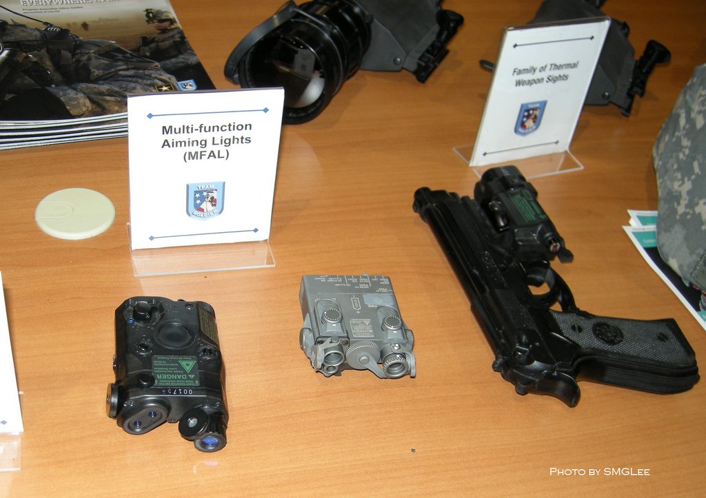 美军在M9上装备的AN/PEQ-14 Integrated Laser/White Light Pointer (ILWLP)战术灯,原本这是为Mk23 MOD0研制LAM