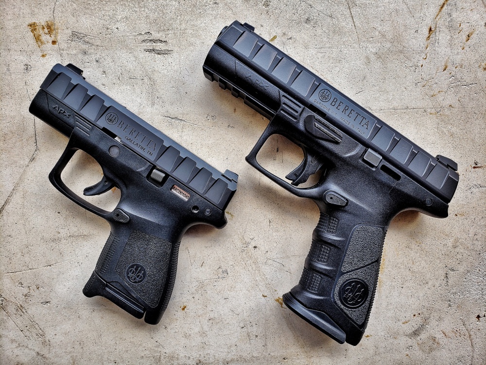 APX袖珍型手枪被命名为“携带型”(Carry),是APX中最小最轻的型事情,因为握把也比较薄,所以配两种不锈钢制的单排弹匣。一种是与握把高度相同的6发弹匣,另一种是加长型8发弹匣,无论6发还是8发弹匣都在伸出握把外的部位配上尾指托板,所以握持起来更舒适,但隐蔽性前者会稍好一些。APX袖珍型的底把配有黑色、灰色、沙色和军绿色(OG)4 种,用户可以购买整枪,也可以购买底把来自己更换。因为模块化的设计,所以更换底把很容易。但APX袖珍型与其他型号的底把、弹匣都不通用。另外,APX袖珍型的握把没有更换背板改变握围尺寸的功能。