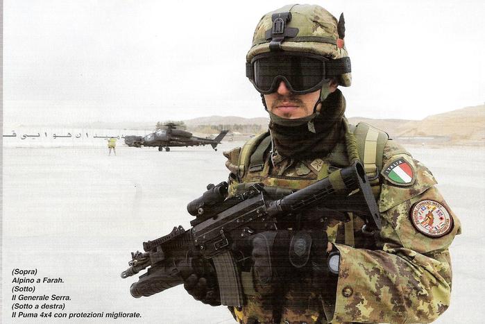 在阿富汗的意大利士兵,他在SCP-70/90下面挂下了为ARX-160研制的GLX-140榴弹发射器