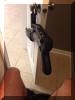 利用托底板上的大钩据枪单手举枪的方法