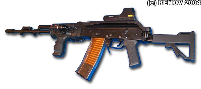 这种改进型从短命的民用型上采纳了几项改进,包括鸟笼形消焰器、“P”形弹匣卡笋、折叠准星座筀等等,另外又采用了一种新的半透明弹匣。这种弹匣最初试验时曾打算设计成全透明材料的,但在试验中发现很脆很容易坏掉,反光也强烈。这种新弹匣有20发和30发两种容量,20发弹匣空重160g,实弹匣重406g;30发弹匣空重185g,实弹匣重554g。瞄准具表尺分划有100米、200米和400米3种。标准配备包括:20发弹匣1个,30发弹匣3个,4个15发弹夹条,和弹夹装填套,通条,维护工具、油壶、枪带和弹匣袋。