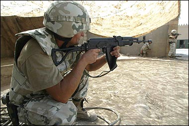 这是一名第一支部署到伊拉克的波兰军队的无线电报务员,注意看他的wz.96步枪的握把与护木上缠绕的白布,以前来解决因烈日暴晒产生的表面炙热问题