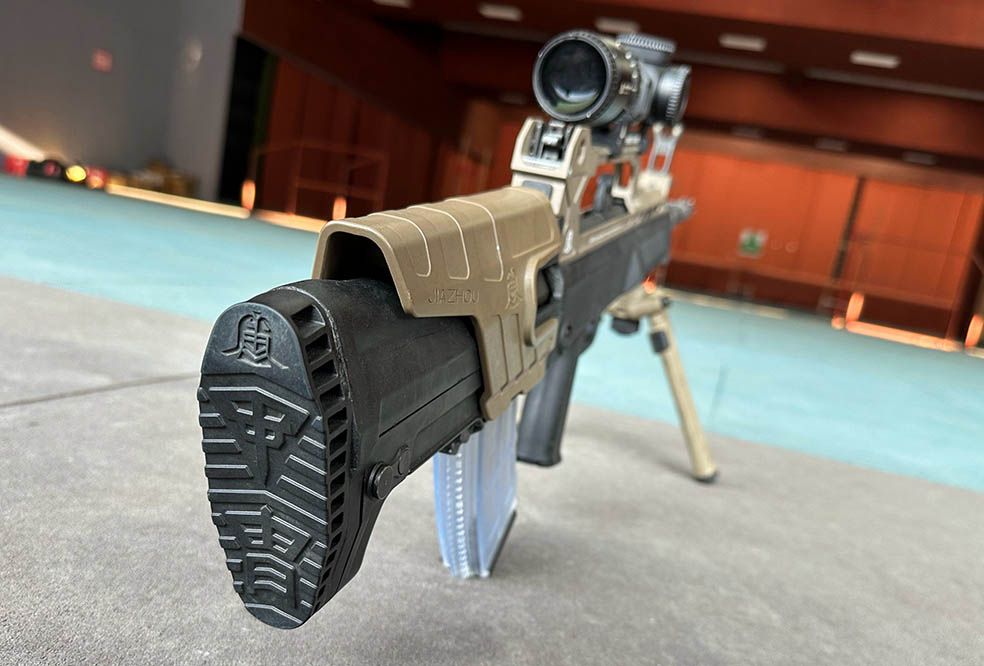 QBU95-1以QJB95-1班用机枪为基础,融入了多项创新设计。该枪采用了赤霄系统,显著提升了武器系统的稳定性和精确性。在结构上,QBU95-1配备了导轨系统,便于安装各类瞄准镜,特别是远近皆宜的LPVO瞄准镜,使其在不同距离上都能实现精准打击。此外,贴腮板的设计使得安装瞄准镜后,增加的瞄准基线高度能够为射手提供更舒适的射击体验。为提高射击精度,特意拆卸了固定在枪管上的两脚架,改为通过皮轨安装到护木底下的两脚架,降低因为枪管中部支点受力而干扰了枪管的自由震动。另外,考虑到卧姿射击的便利性,还特意配备了20发短弹匣。