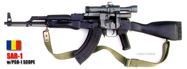 罗马尼亚的SAR系列是半自动的民用型AK步枪,SAR即Semi-Automatic Rifle的缩写。SAR系列有三种型号,SAR-1是半自动的AKM,SAR-2是半自动的AK-74,SAR-2可以直接使用AK-74的塑料弹匣,而SAR-3则是发射北约5.56mm步枪弹的半自动AK步枪。SAR系列保留有手枪型握把和膛口装置等突击步枪特征,但取消了AIM和AI-74的前握把。在SAR系列被禁止进口到美国后,罗马尼亚才推出其他运动型枪托的AK。
