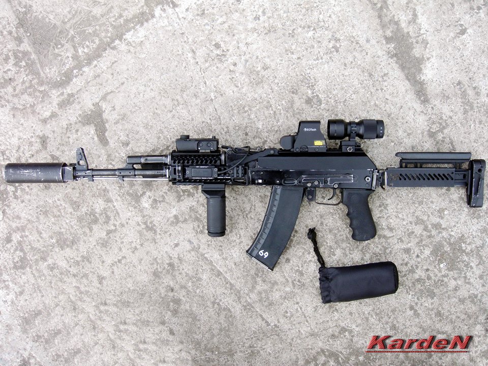 在机匣盖顶部至护木顶部整合有皮卡汀尼导轨用于安装光学瞄准具,护木的左、右侧和下方也有导轨,导气箍上还有一小段导轨。显然是因为现在俄军中使用皮卡汀尼导轨改装枪支的情况已经令伊孜玛什公司不能无视这样的需求。另外机械瞄具的照门改为觇孔式,而不是AK系列传统的缺口式,所以照门从旧AK的机匣前端移至机匣尾部(觇孔的明视距离短),而且直接就安装在机匣盖上。