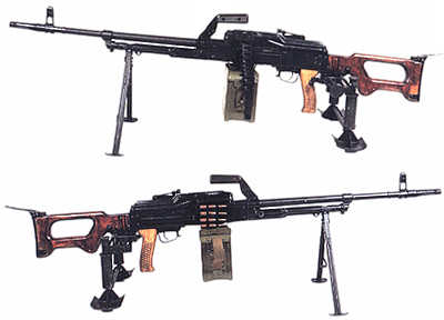 在8年后,卡拉什尼科夫在1969年推出一种PK的改进型,称为PKM。PKM很容易就识别出来,它的枪管较轻,没有凹槽,枪托底板上有翻转式的支肩板。PK/PKM系列有四种型号: