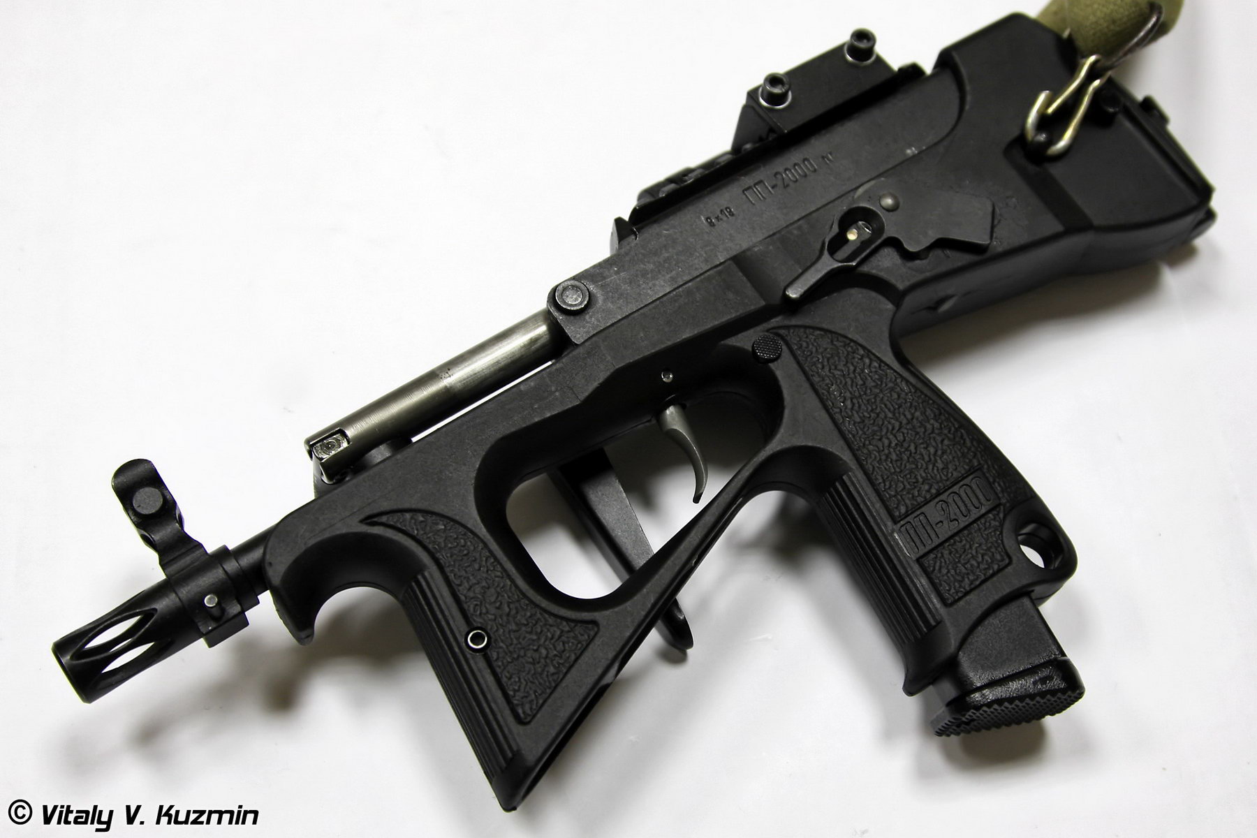 PP-2000冲锋枪由图拉的KBP仪器设计局研制,在2004年夏天巴黎举办的萨托里欧洲军备展上初次公开,其后又参加了秋天在莫斯科举办的国际军备展。PP-2000的外形非常新奇有趣,其外观设计专利是在2001年申请。