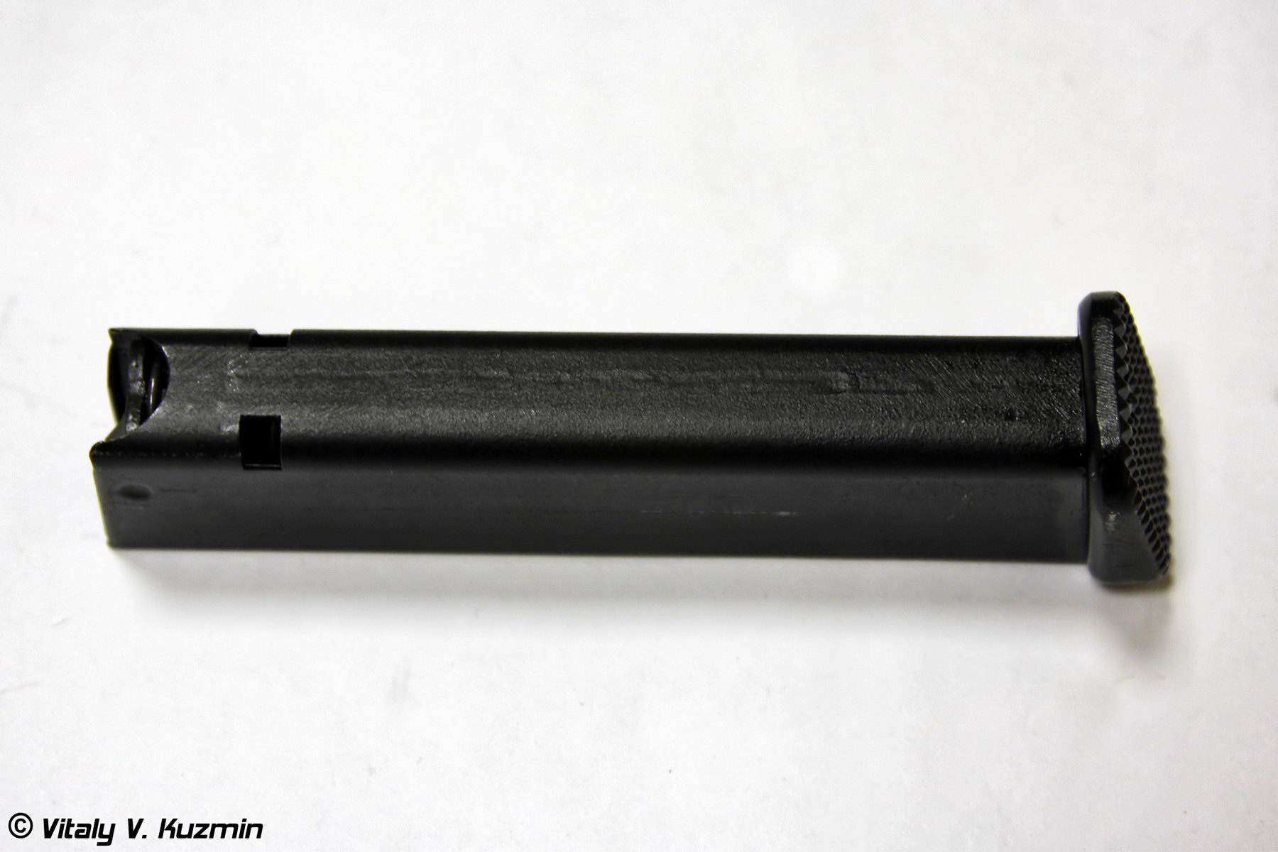 PP2000的20发弹匣,弹匣底板和可以当肩托用的44发弹匣一样都有防滑纹