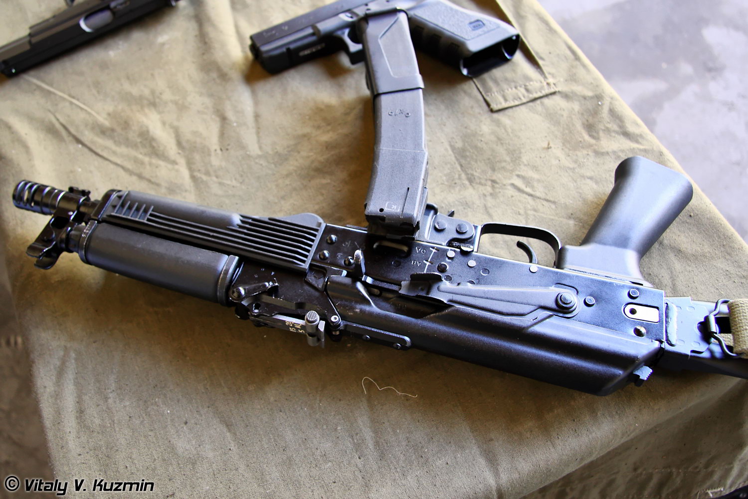 “勇士”冲锋枪与AKS-74U有70%的零件通用,只是把自动原理改为自由式枪机,闭膛待击。由于9mm手枪弹的长度较短,因此机匣较短。弹匣为塑料外壳,直插式固定,因此机匣底增加了一个弹匣座。