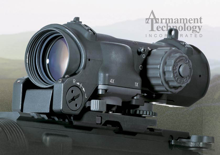 ELCAN SpecterDR有1-4x和1.5-6x两种,目前1-4x正在被美军特种部队所采用。DR是双重角色(DUAL ROLE)的缩写,这种瞄准镜既可以以低倍率用于近距离战斗,也可以用放大倍率进行远距离的精确射击。幽灵DR的固定镜组是放大功能,但中间有一个旋转透镜,通过旋转其90度达到变倍的目的。幽灵DR的底座内有电池盒,用于提供分划照明。目前美军特种部队中对于幽灵DR的评价是两极分化,要么极其喜爱,要么极其恨(很多人都说ARMS的快拆不耐操)。