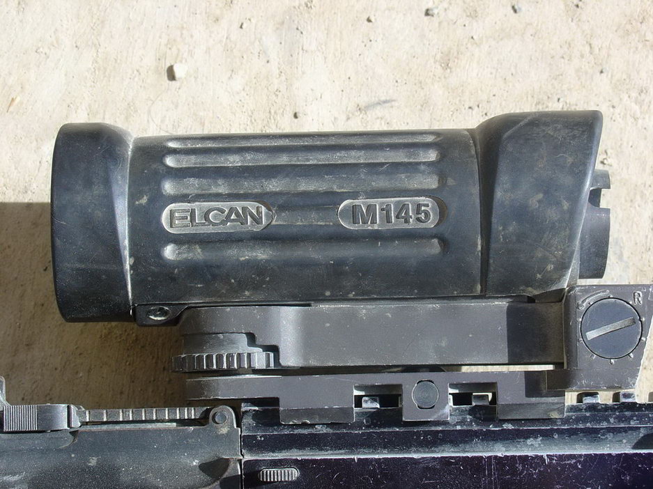 美军经过对ELCAN Specter OS3.4瞄准镜的试验,也发现这种瞄准镜很适合用在轻机枪或通用机枪上,能有效发扬机枪远射程火力的优势,因此也大量装备了ELCAN瞄准镜。不过美军所装备的型号作了一些改进,包括在物镜前加上防反光装置,取消了后备机械瞄具等,并重新命名为M145 MGO(MachineGun Optic,即“机枪光学瞄准镜”)。另外还专门为卡宾枪及机枪配用了两种不同的分划。加拿大军队也在C7步枪、C8卡宾枪和C9轻机枪上大量使用ELCAN瞄准镜,但从阿富汗的反馈来看,有些加拿大士兵对ELCAN的镜架很不满,认为不耐操,容易坏。