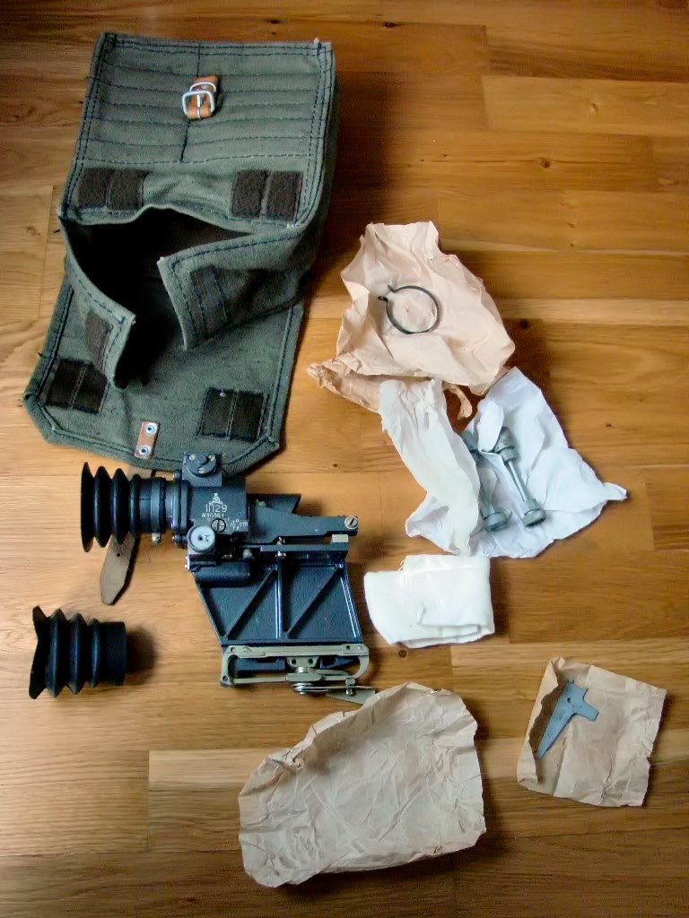 1P29瞄准镜是一种小型战场瞄准镜,1P29瞄准镜倍率4倍,视场8度,重0.8kg。事实上,这个瞄准镜是英国SUSAT瞄准镜的仿制型,专门用于安装在AK步枪的侧式瞄准镜座上。而有趣的是,俄国人的设计是把SUSAT反过来:SUSAT用作瞄准分划的锥形塑料柱是从底部竖上去的,而1P29瞄准镜则是从顶部吊下来的。但与SUSAT一样,1P29瞄准镜在夜间可用绿光照亮锥形塑料柱的尖端,另外还在右侧增加了一块类似PSO-1设计的测距分划板,这也是1P29瞄准镜比起SUSAT的创新之处。