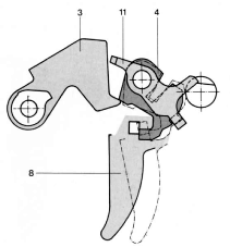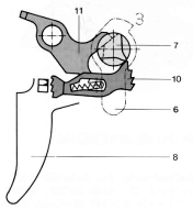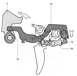 下机匣左右两侧都有快慢机柄(早期型号只安装在左侧),一种快慢机有保险、半自动和全自动三档,另一种快慢机有保险、半自动、3发点射和全自动四档。冬天戴防寒手套时,可把扳机护圈向左或向右掰开,即使戴上厚厚的指套也能扣动扳机。扳机力为35N,扳机动作顺畅,便于精确射击。