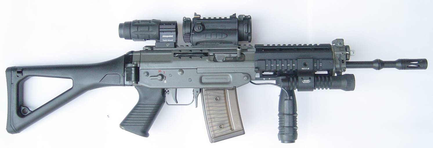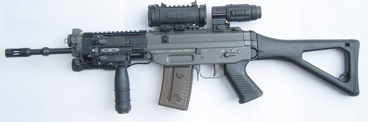 长枪管型的SG552-LB是在原来的SG552上延长枪管至346mm,并能发射枪榴弹和可安装刺刀。