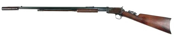 安装在韦伯利M1908手枪上的马克沁M1929型消声器,这是同心安装方式