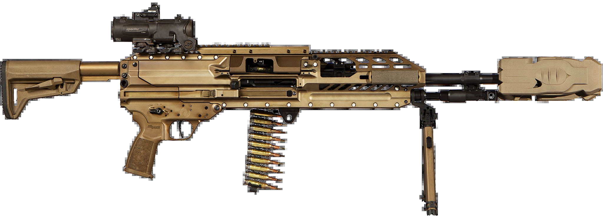 同样是6.8mm口径M250机枪上安装的MFMD,虽然口径与M7相同,胆MFMD的型号却不一样