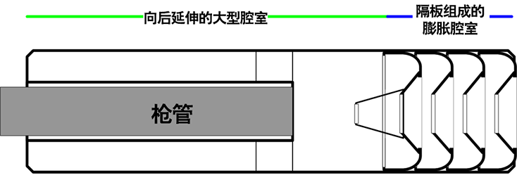 使气体膨胀冷却,以防止激波波前温度上升或使枪口气体与周围空气缓慢地混合,以控制氧气量,防止产生二次焰,因而也可防止与之有关的噪声。
