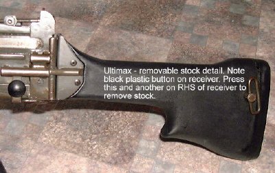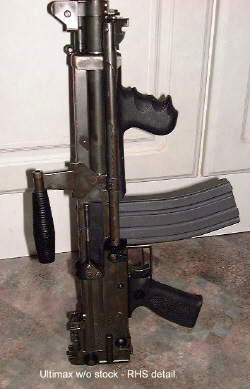 事实上,MK4型的这种可拆卸的M16弹匣插座是由美国的ADM公司的CEO文森特·德尼罗(Vincent DeNiro)和主设计师布莱恩·武克桑诺维奇(Brian Vuksanovich)在2003年设计的,它不仅可用于MK4型Ultimax 100机枪,同样也能用于旧的型号。例如克罗地亚军队就在他们原装备的Ultimax 100式MK2型机枪上安装这个M16弹匣插座。另外MK4型还安装有一个骨架形的金属折叠枪托。