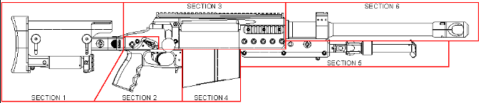 所有OM50步枪都是以同样的航空铝材机匣和钢枪机组为基础,枪机为手动操作的旋转后拉式。机头上有3个闭锁凸笋,进入枪管节套的闭锁槽内闭锁。枪管为浮置式,通过一组螺钉固定在机匣前端。扳机是两道火类型,完全可调。机匣连接有前托。机匣顶部有皮卡汀尼导轨,可安装各种瞄准镜及其他配件(激光、夜视仪、战术灯等)。顶部导轨可提供20至40个MOA的角度调整。