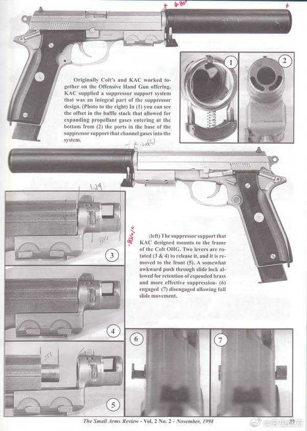 这是柯尔特公司参与美国特种作战司令部的进攻型手枪武器系统(OHWS)竞争失败的设计,因此只有样枪,没有正式的命名。一般称为柯尔特进攻型手枪或柯尔特SOCOM手枪。柯尔特进攻型手枪在1992年8月提交美国海军作战武器支援中心进行试验,1993年春试验结束,如果被采用,原计划是在1995年初投产的。当然,最终的SOCOM手枪合同被HK公司夺得,柯尔特的样枪只发展到第一阶段就结束了,但其消声器却被HK SOCOM手枪所采用。有关OHWS的发展过程可参考本站上的Mk23 MOD0介绍。