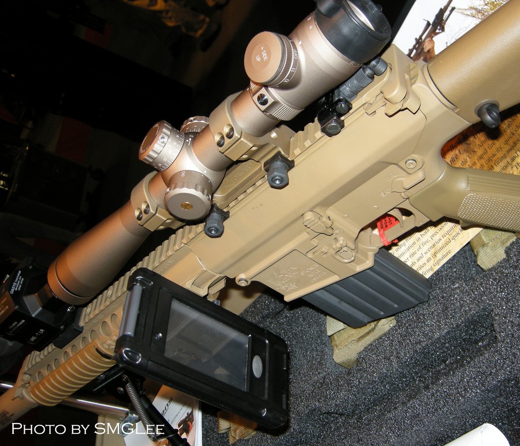 美国陆军一共找了5家承包商来参与进来,最后筛出两个方案进入最后竞争阶段的对比试验,有意思的是,最后筛剩的这两个方案均是以AR-10机构为基础的改进项目,分别为KAC公司的SR-XM110和雷明顿MPD/DPMS的AR-10T,后者是配20英寸中型比赛级枪管的阿玛莱特AR-10半自动步枪改进型(阿玛莱特也是5家承包商之一,但却没入围最后阶段),而KAC的SR-XM110则是改进自KAC公司原本为美国海军海豹突击队生产的Mk11 Mod0狙击步枪系统。