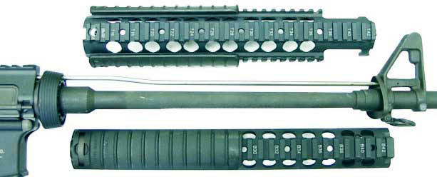 KAC在2014年和2015年SHOT SHOW上展出的SR16采用了新款的KeyMod护木