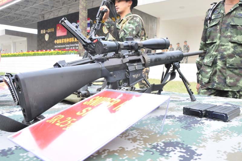 2010年泰国陆军来中国联合演习交流的照片,泰军狙击手的装备是SR25