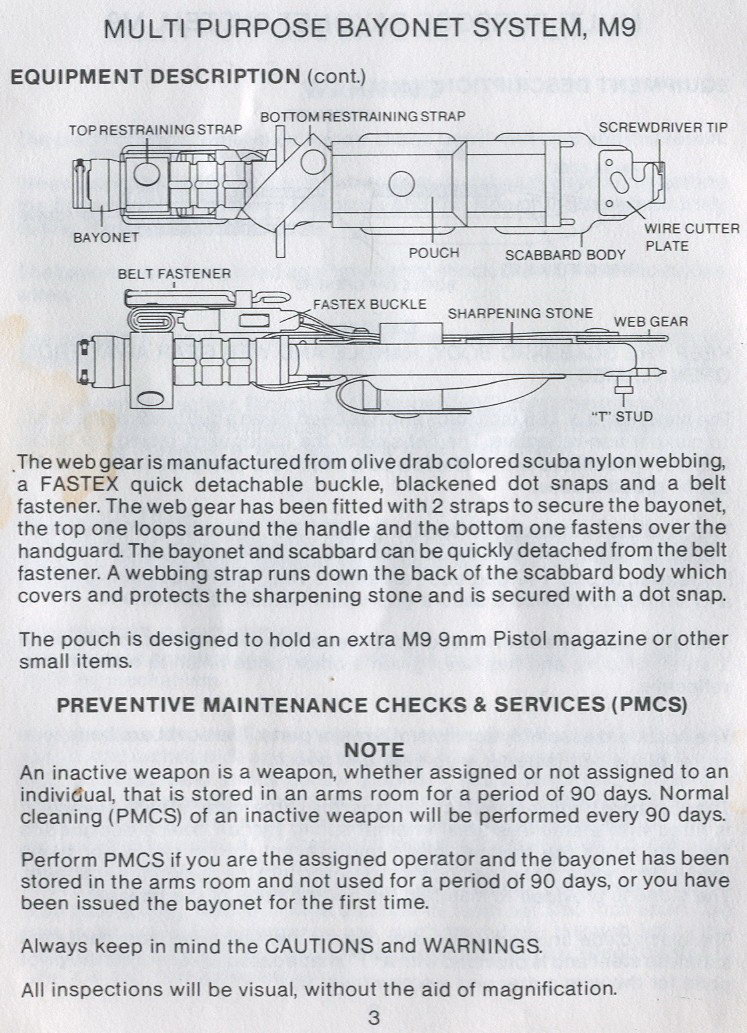 美国注意到M7刺刀的落后后,在1980年代初也提出装备多功能刺刀的要求。经过招标,选中了菲罗比斯公司(PHROBIS)生产的III型猎用匕首,并在1986年定型了新的M9刺刀。由于菲罗比斯公司的产能有限,因此在1989年开始由巴克(Buck)公司为美军供应M9刺刀。再后来,又分别由兰卡公司(LanCay)和安大略公司(Ontario)接手为美军供应M9刺刀。